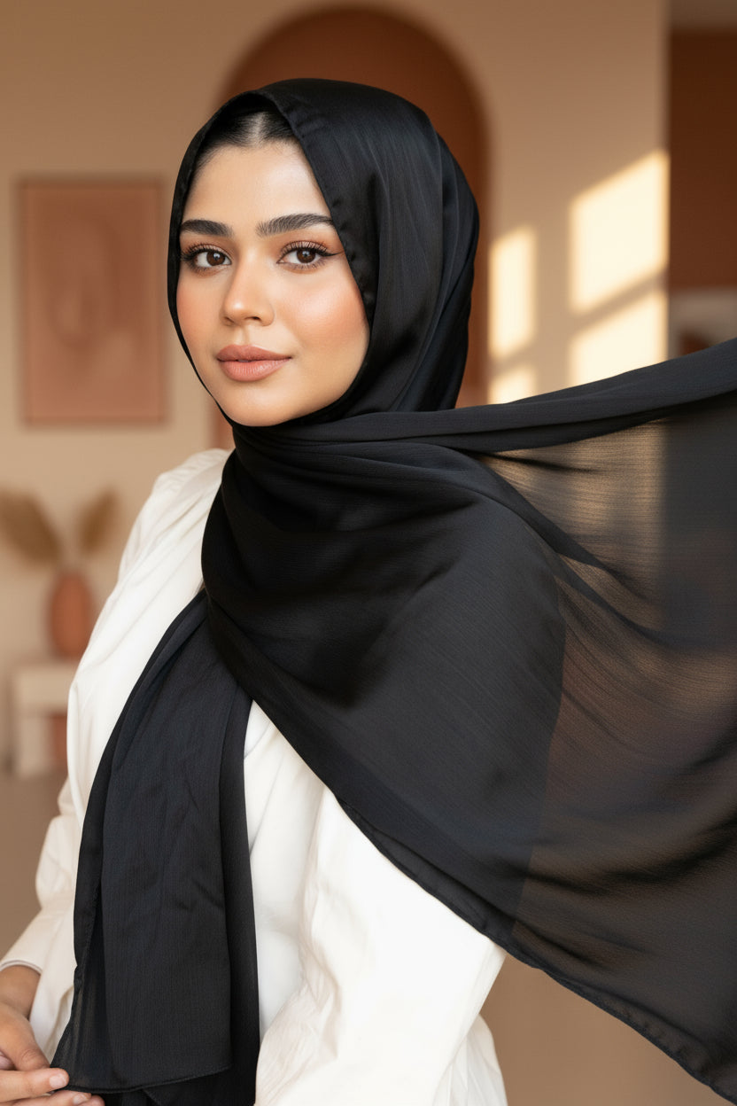 Experience the luxury of our BLACK KNIGHT Deluxe Satin Crepe hijab. Crafted from premium satin crepe fabric, this hijab offers a sumptuous feel and a dazzling appearance. Its lightweight and breathable design makes it perfect for any occasion, from weddings to fancy events. Elevate your wardrobe with this versatile and stylish accessory.