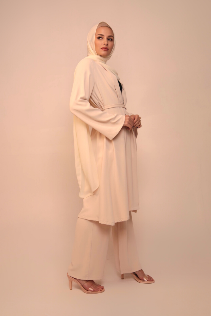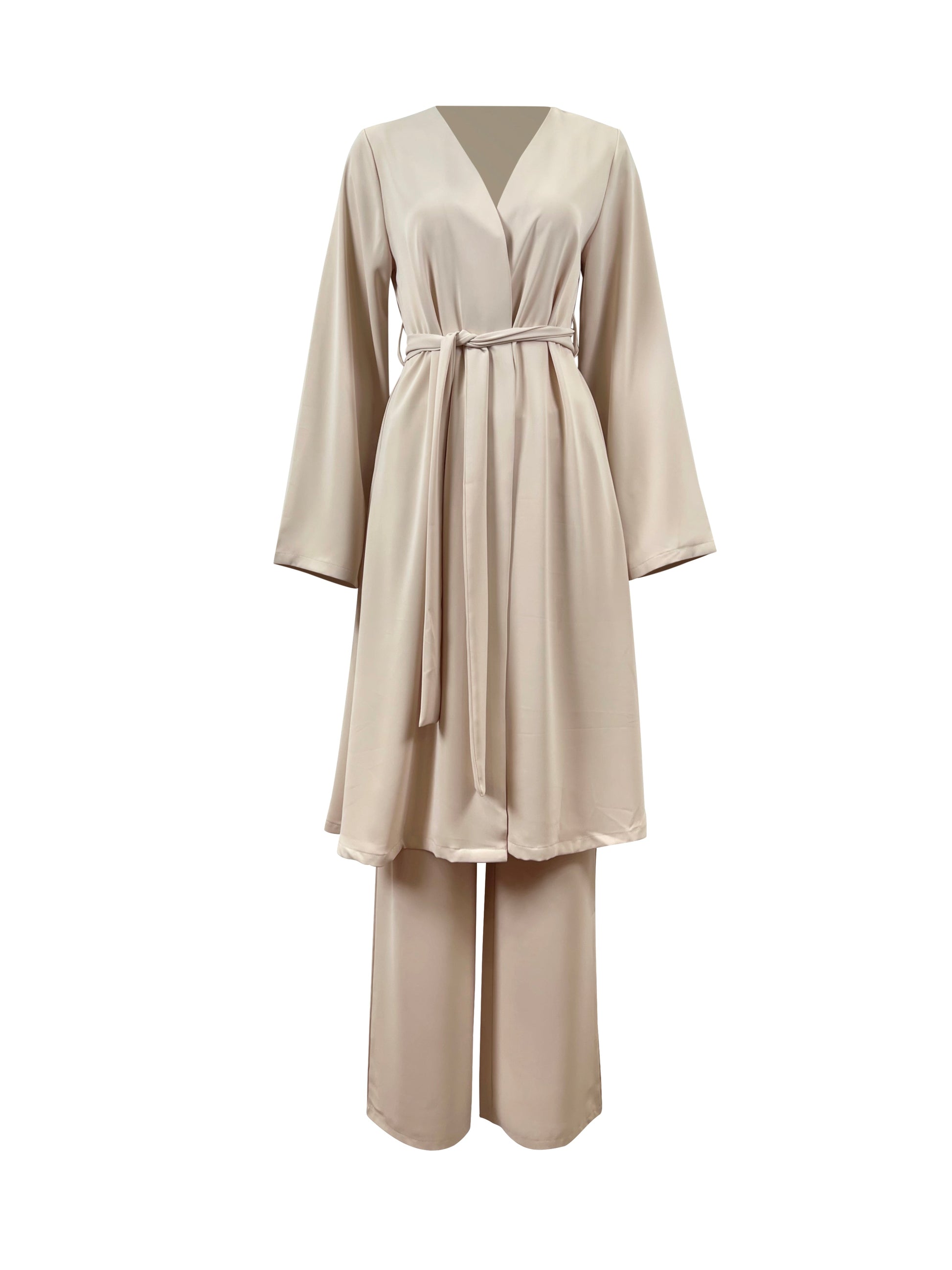 Chloe Two Piece Matching Set is made with elegance. Niswa brings you our newest addition to the two piece sets, giving anyone who dares to wear a stylish but also fierce look. A silky satin knee length top giving you the decision to keeping it tied or open. The set also comes with open pant style trousers which is just what you need for style and comfort. The tie near the waist offers the piece a more professional look.