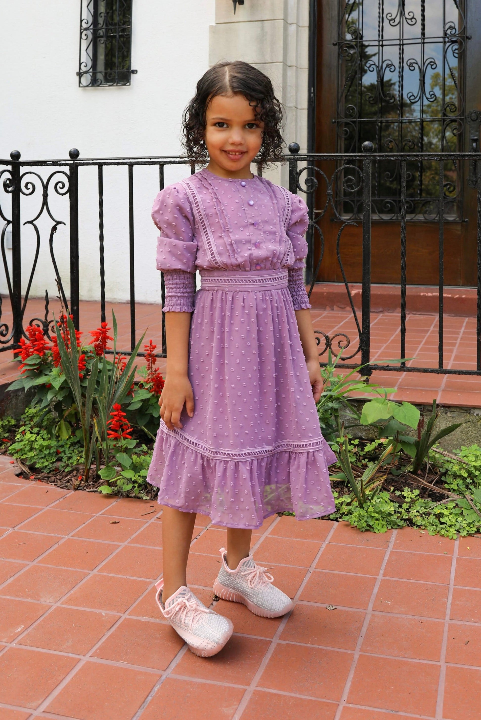 This unique maxi dress showcases an exquisite embossed bodice with lace paneling and a round collar. The button-down front, ruched cuffed sleeves, and lace-detailed hem make it a stunning masterpiece for your wardrobe. Offered in three shades, the design of this maxi dress is distinctive and exciting, perfect for any style.