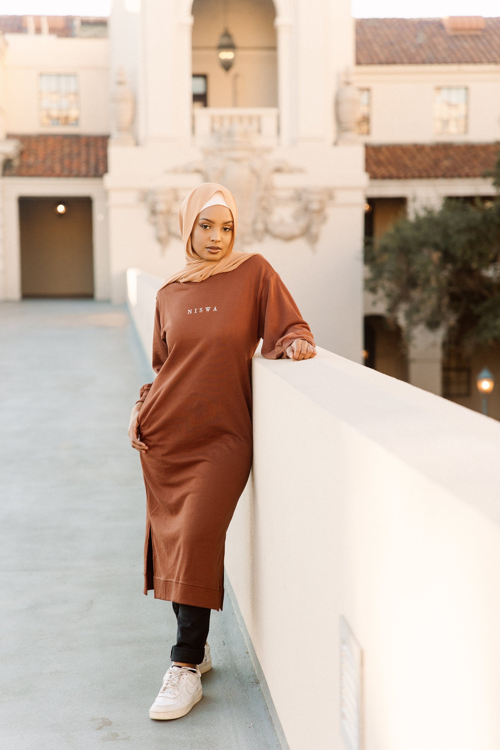 Go for a modest sporty style with a dressy twist with Niswa’s New Classica Logo Midi Sweatshirt. Adorned with our classic Niswa Logo, find comfort, modesty, and style, all in one piece. Perfect for the cold weather, a workout, or a day out the Niswa Classica Midi has you covered. A classic rounded collar stretch cuff sleeves create an effortless slip on sweatshirt. Style with boots, sneakers, slippers the modeset options are endless.