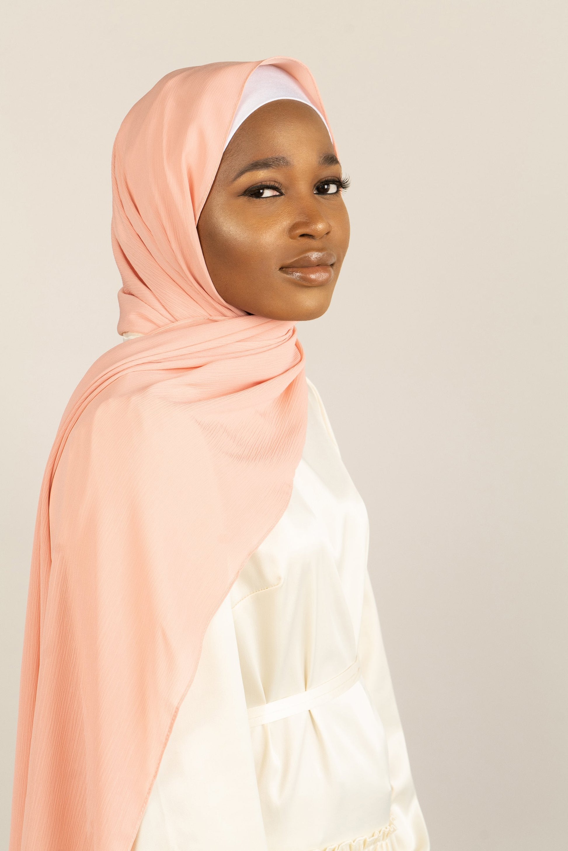 Our Crepe Chiffon Women's Scarves are so delicate and light yet incredibly chic with a crinkle texture. This scarf can be easily worn as a hijab or a wrap-around for any occasion, whether work, school, or formal events Niswa Chiffon scarves have got you covered. Eligible for free shipping!